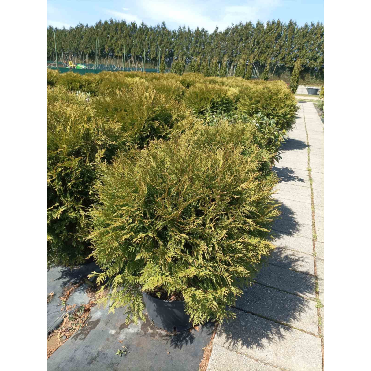 A gömb tuja „Thuja occidentalis Danica” egy igen vonzó, dekoratív, élénkzöld, smaragd színű, sűrű ágú örökzöld dísznövény. Gömb alakú törpe tuja. Évente kb 5-10 centimétert növekszik. 100 cm magas gömb formát nevel.