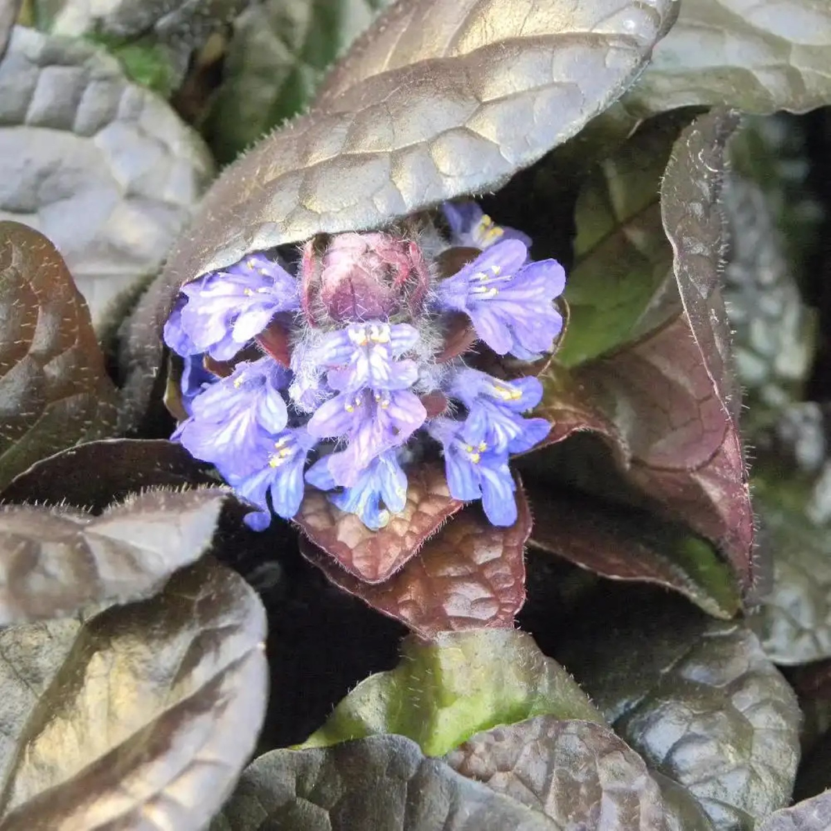 Az indás ínfű (Ajuga reptans 'Elmblut Blue') alacsony növekedésű, szétterülő évelő, amely kiváló választás talajtakarónak vagy dekoratív őszi beültetésekhez. Kompakt méretű, indigókék virágai és sötét lombozata kontrasztos, mutatós megjelenést ad a kertnek.