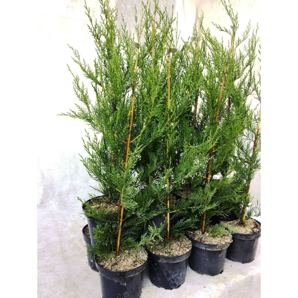 Leyland ciprus 2 literes konténerben. A leggyorsabban növő, pikkelylevelű dísznövény és egyben a legnépszerűbb hazai örökzöld sövénynövény. Talajban nem válogat, szárazságra nem érzékeny. Extra gyors növekedésű, éves növekménye 1-1,5 méter is lehet. 20 éves korára elérheti a 20-22 méter nagyságot is természetes formájában. Rendkívül gyors növekedése miatt az egyik legjobban takaró örökzöld sövénynövény. Hajtásai zöld színűek, felállóak, a sudara nem bókol. Széles oszlop alakú koronát nevel, tobozt csak idős korban hoz, akkor is keveset. Fiatal korában fagyérzékeny, ezért érdemes tavasszal telepíteni, hogy a tél beálltáig jól begyökeresedjen, megerősödjön. Fagytűrő örökzöld, teleinket jól tűri, ám ez leginkább az idősebb példányokra jellemző. Talajban nem válogat, ám meghálálja a rendszeres tápanyag-utánpótlást. Szárazságtűrő, ellenben öntözött talajon gyorsabban fejlődik. Idősebb példányok sokkal jobban tűrik a szárazságot, mint a hasonlóan díszítő Chamaecyparis fajok. Kevésbé betegség fogékony, nem bántja kórokozó. Kiváló por-, szél-, és zajfogó, ezért városi kertek nagyszerű sövénynövénye. Feltűnően szép, zárt sövény nevelhető belőle. Szoliter növényként is különleges. Optimális választás a következő célokra: szomszéd felőli takarás, élősövény, utcafront felőli belátás megakadályozása.