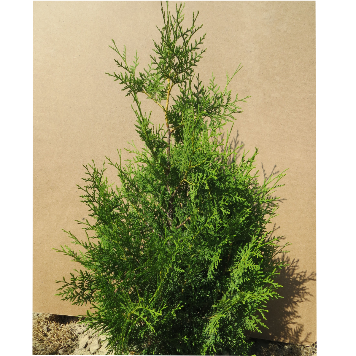 Tuja földlabdás brabant Thuja/Atrovirens, 80-100 cm, zhuja Brabant: Viszonylag gyorsan nő, elsősorban sövénynek ültetik, szabályos kúpkoronájú fajta. Thuja plicata Atrovirens: mély sötétzöld pikkelylevelű, gyorsan növő, sövénynek ültetik, piramis alakú.