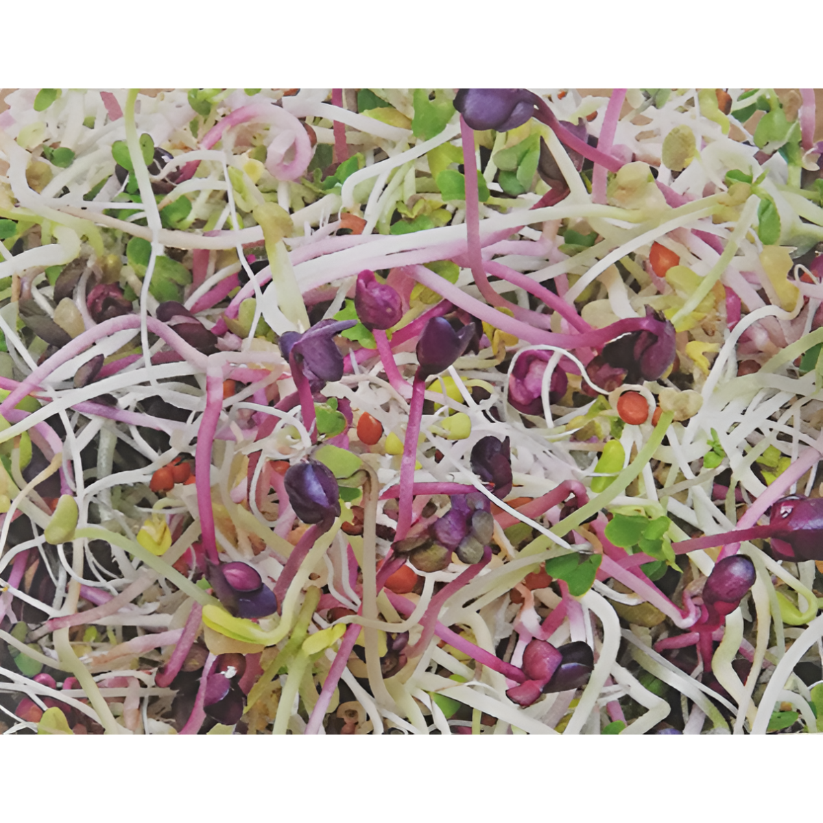 Daikon (japán) retek, rukkola, brokkoli és görögszéna keveréke. A csírák friss, csípős ízűek. Számos étel egészséges és ízletes kiegészítője lehet, de különösen ajánlott curry-hez, taco-hoz vagy nyársakhoz. Csírázási idő: kb. 6 nap.
