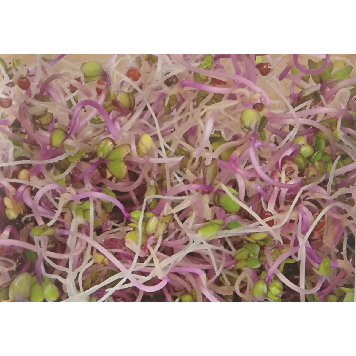 A karalábé gyönyörű, mély lila csírája enyhén édeskés, diós, káposztához hasonlító ízű. Kiválóan felhasználható salátákba, szendvicsekhez, készételekhez, turmixokba, tojásos reggeli ételekhez. Igen ízletes és tápláló. Csírázási idő: kb. 7 nap.