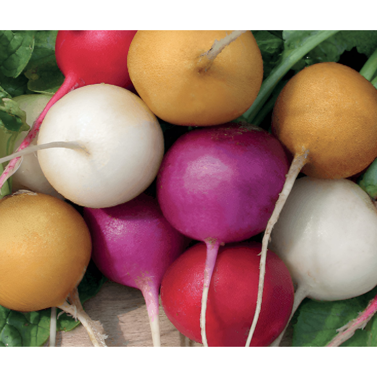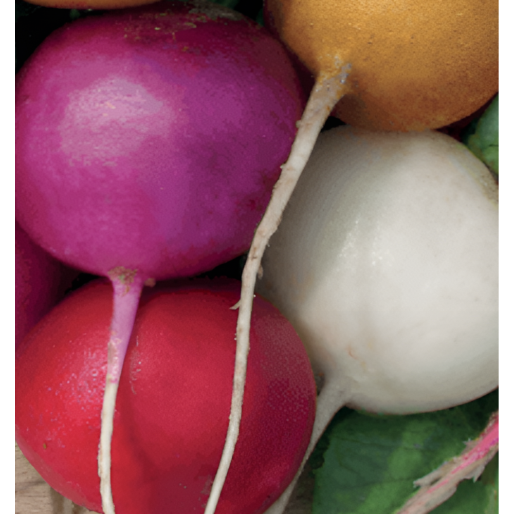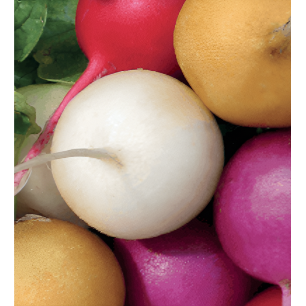 Különböző színű hónapos retekfajták keveréke, mely lehetőséget ad a hosszabb idejű termés betakarításra. A gumók ropogósak és kiválóan alkalmasak salátákba és ételek dekorációjához. Lehetőséget ad a kertészeknek és a kertészkedni vágyóknak arra, hogy változatos színű retkeket termeszthessenek.