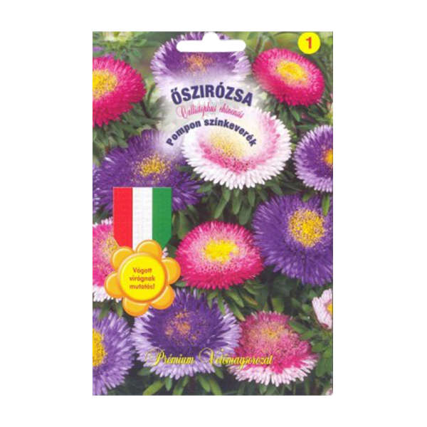PRÉMIUM VETŐMAG ŐSZIRÓZSA POMPOM Tömör sziromzattal rendelkező, pompon formájú, több színben pompázó őszirózsa különlegesség. Egynyári virágágyások, késő őszig mutatós dísze. Vágott virágnak is alkalmas.