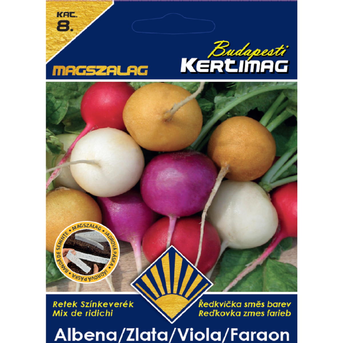 A Retek magszalag színkeverék különböző színű hónapos retekfajták keverékét tartalmazza ültetőszalagos formában, amely megkönnyíti az egyenletes vetést és a szép, egyforma kelést.