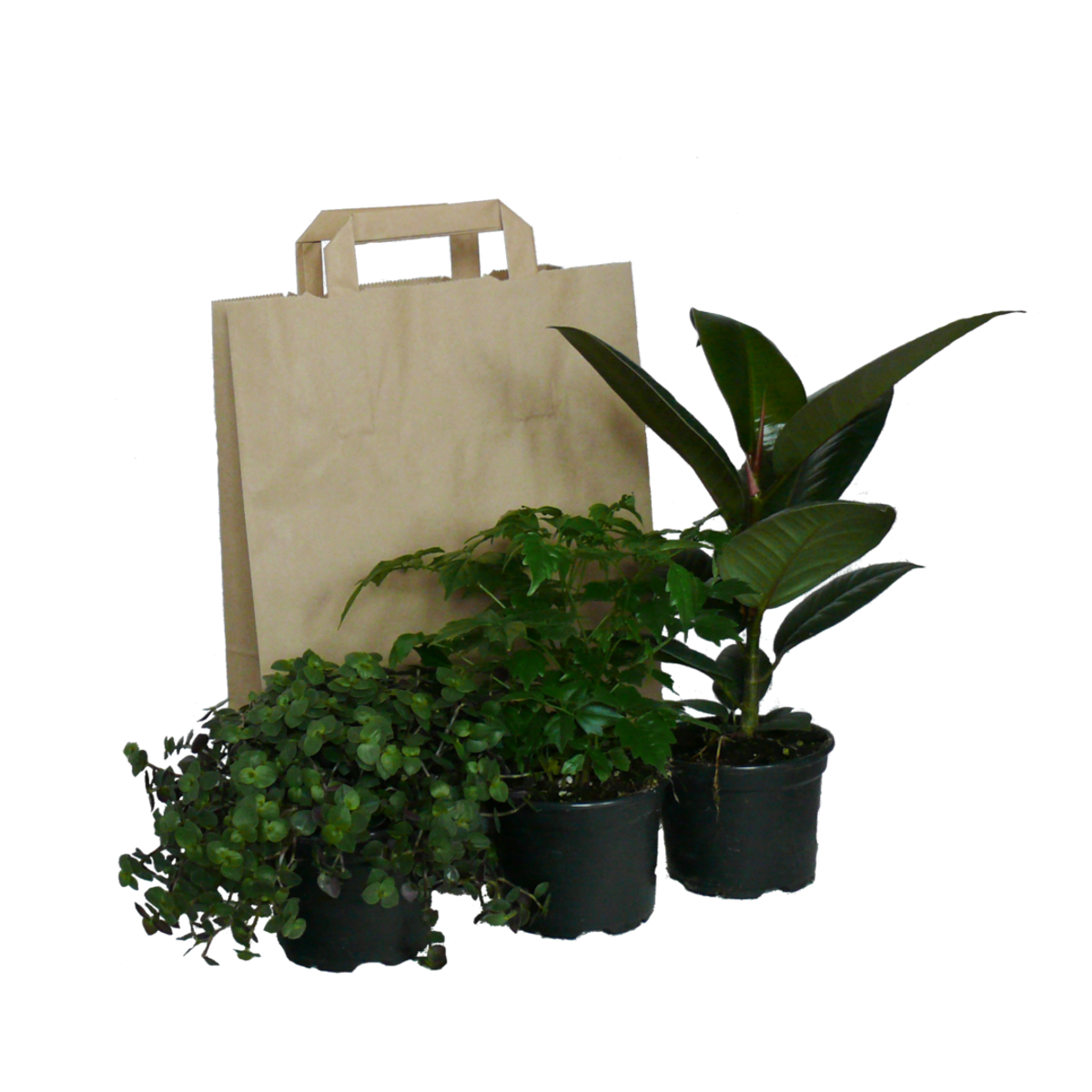 3 db szobanövény ajándék papír táskában. Levéldísznövények 10,5 cm-es cserépben. Több fajta