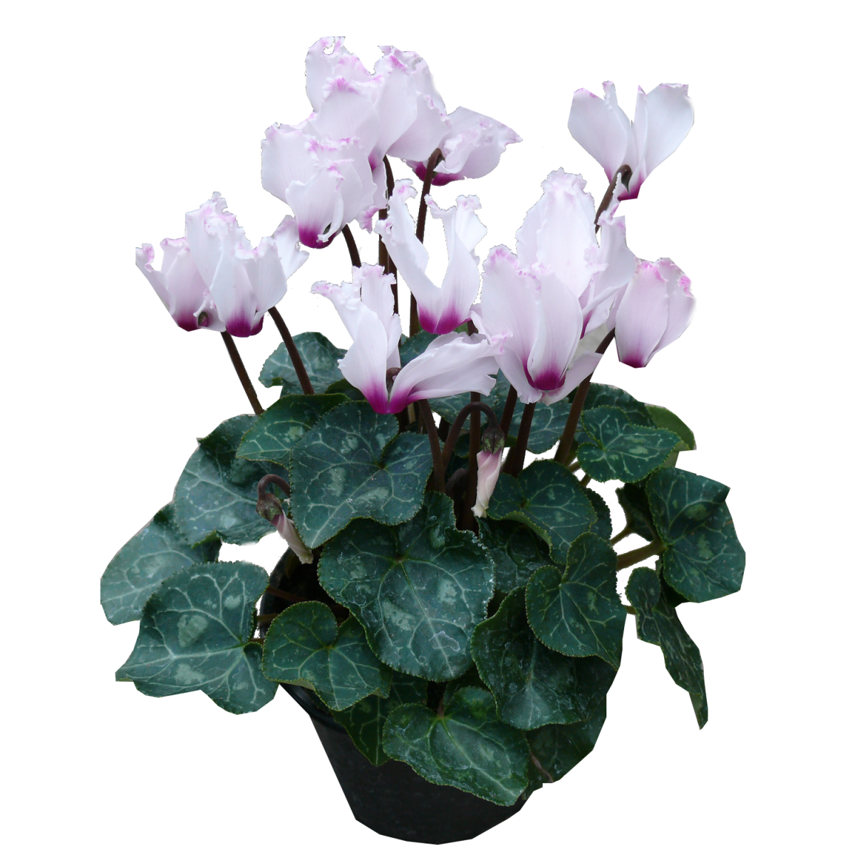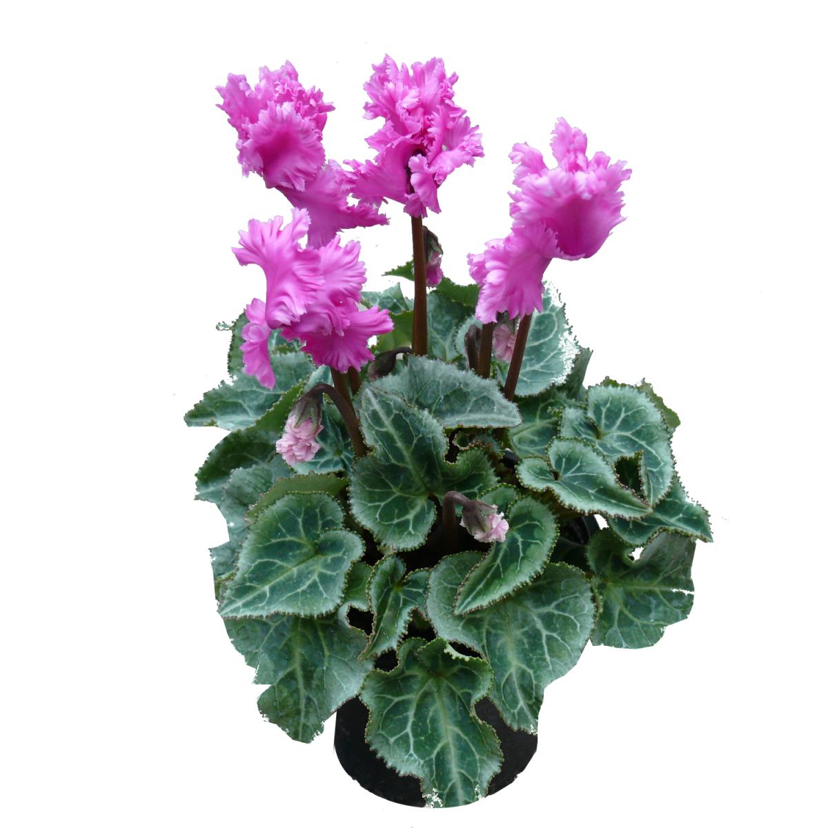 Ciklámen 10,5 cm-es cserépben. Hullámos szírmú virágok, élénk virágszínek . Erős fényre érzékeny!