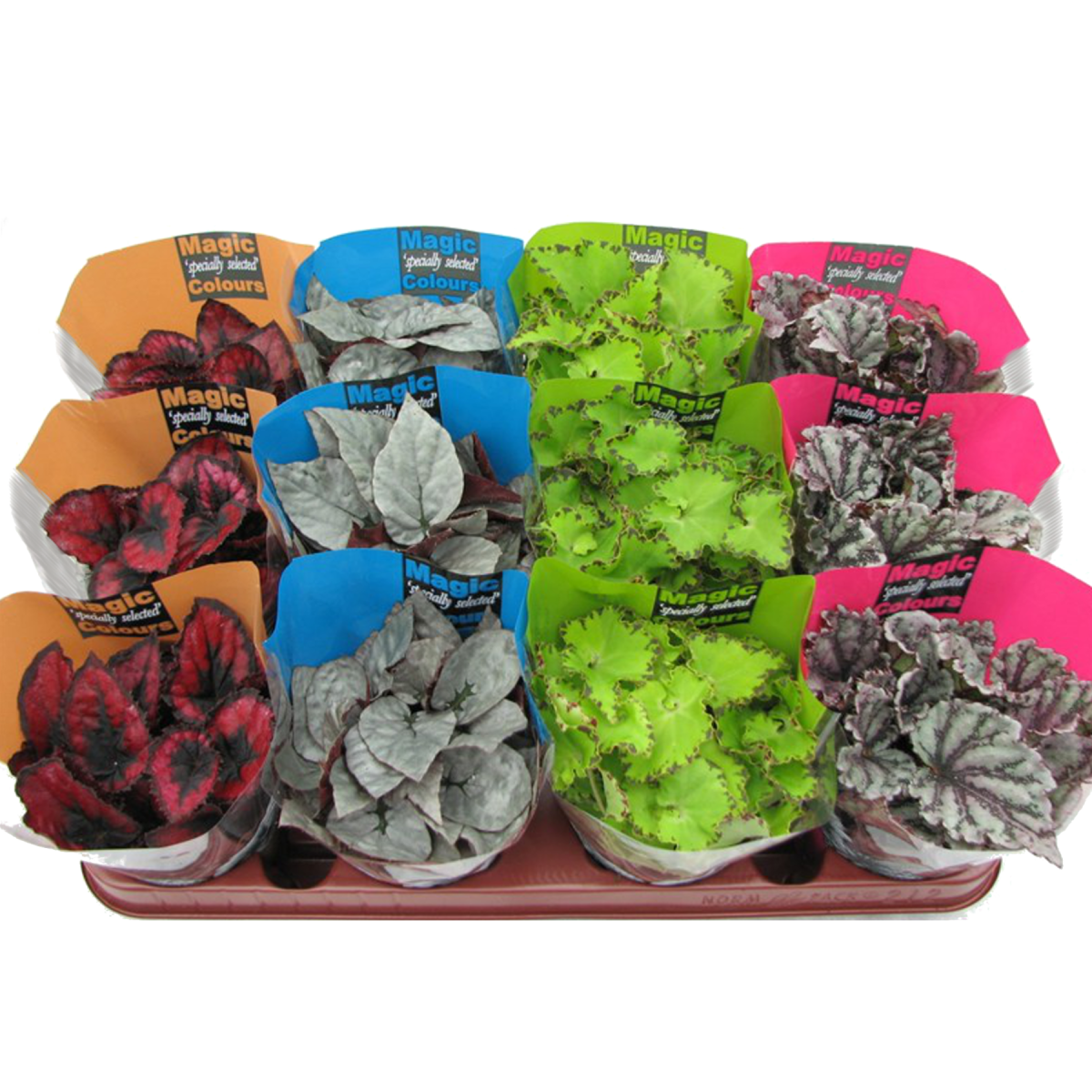 A levélbegónia mix egy gyönyörű szobanövény, amely különböző színű és mintázatú levelekkel rendelkezik. Ezek a növények félárnyékos helyet kedvelnek, és mérsékelt öntözést igényelnek. A levélbegóniák magassága elérheti a 35 cm-t, és 12 cm-es cserépben kaphatók. Ideális választás lehet otthonod díszítésére, mivel könnyen gondozható és nagyon dekoratív.