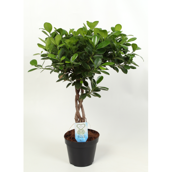 Kislevelű fikusz moclame (ficus microcarpa moclame) 17 cm-es cserépben. Legideálisabb a növénynek a félárnyékos hely és a szobahőmérséklet. Nyáron havonta 1-2 alkalommal ajánlatos tápoldatozni, s a párásítást is kedveli a növény.