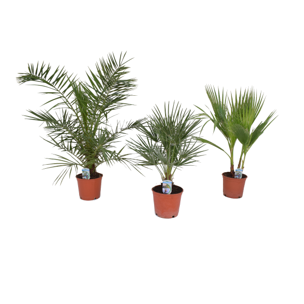 A pálmák családjába több mint 200 nemzetség és 3000-et is meghaladó faj sorolható. Benépesítik a tengerpartokat, előfordulnak a szavannákon és sztyeppéken, valamint a trópusi esőerdőkben és a magasabb hegységekben is. Fő díszüket leveleik adják, melyek megjelenése alapján legyezőpálmákat és szárnyalt levelű pálmákat különböztetünk meg. A szárnyalt levelű pálmák egyik legjellegzetesebb tagja a hegyipálma vagy gyompálma (Chamaedorea elegans), míg a legyezőpálmáké a Washington-pálma (Washingtonia). A pálmák természetes élőhelyükön sok esetben hatalmasra növekednek, és virágokat is hoznak. Szobanövényként tartva, a fiatalkori növekedési szakaszuknál nem fejlődnek tovább, ezért a gyompálmát leszámítva jellemzően nem hoznak virágot. A pálmák gondozásáról általánosságban elmondható, hogy a kellemesen meleg, világos helyet szeretik. A pálmák esetében gyakran jelentkező probléma, hogy a levelek csúcsa barnulni kezd, ezt jellemzően, a száraz levegő és a kevés öntözés okozza. Fontos a rendszeres, de mérsékelt öntözés, mivel a túlöntözés, a pangó víz a pálmák pusztulását eredményezheti, ahogy az is, ha a hajtáscsúcsra, ahonnan az új levelek fejlődnek víz kerül. A legyezőpálmák valamivel vízigényesebbek, mivel a nagyobb levélfelület miatt, gyorsabban párologtatnak. Szeretik az ásványi tápanyagokban gazdag talajokat, ültetésükhöz a B típusú virágföld megfelelő választás.