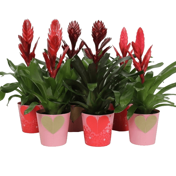 Pikkelyvirág (vriesea classic love) 12 cm-es szívecskés kaspóban.