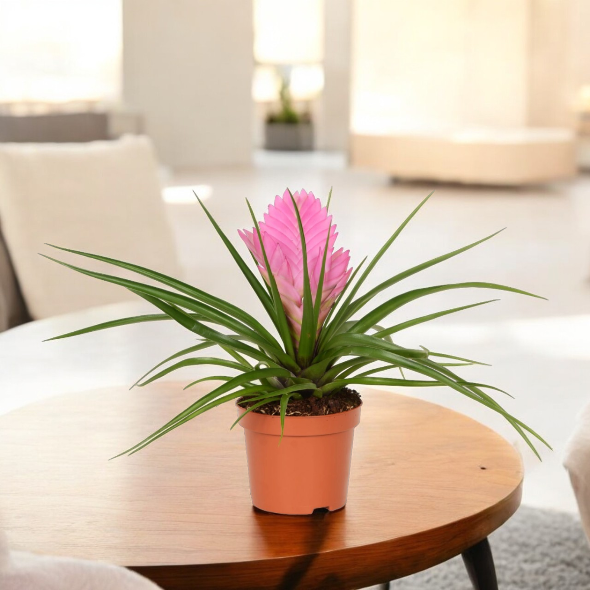 A szakállbromélia egy feltűnő és különleges megjelenésű szobanövény, amely egzotikus hangulatot varázsol a szobába.