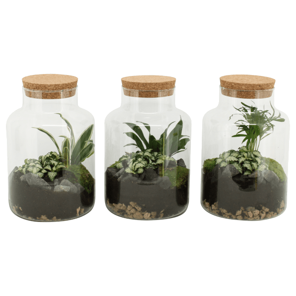Terrarium összeállítás átmérője : 17 cm, Magassága :25 cm. 2. kategória. Törékeny termék.