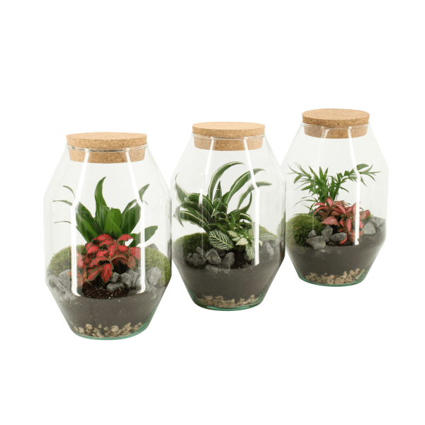 Terrarium összeállítás átmérője : 17 cm, Magassága :25 cm. 4. kategória. Törékeny termék.