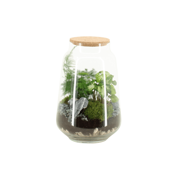 Terrarium összeállítás, átmérő:17 cm, magasság: 25 cm, törékeny termék.