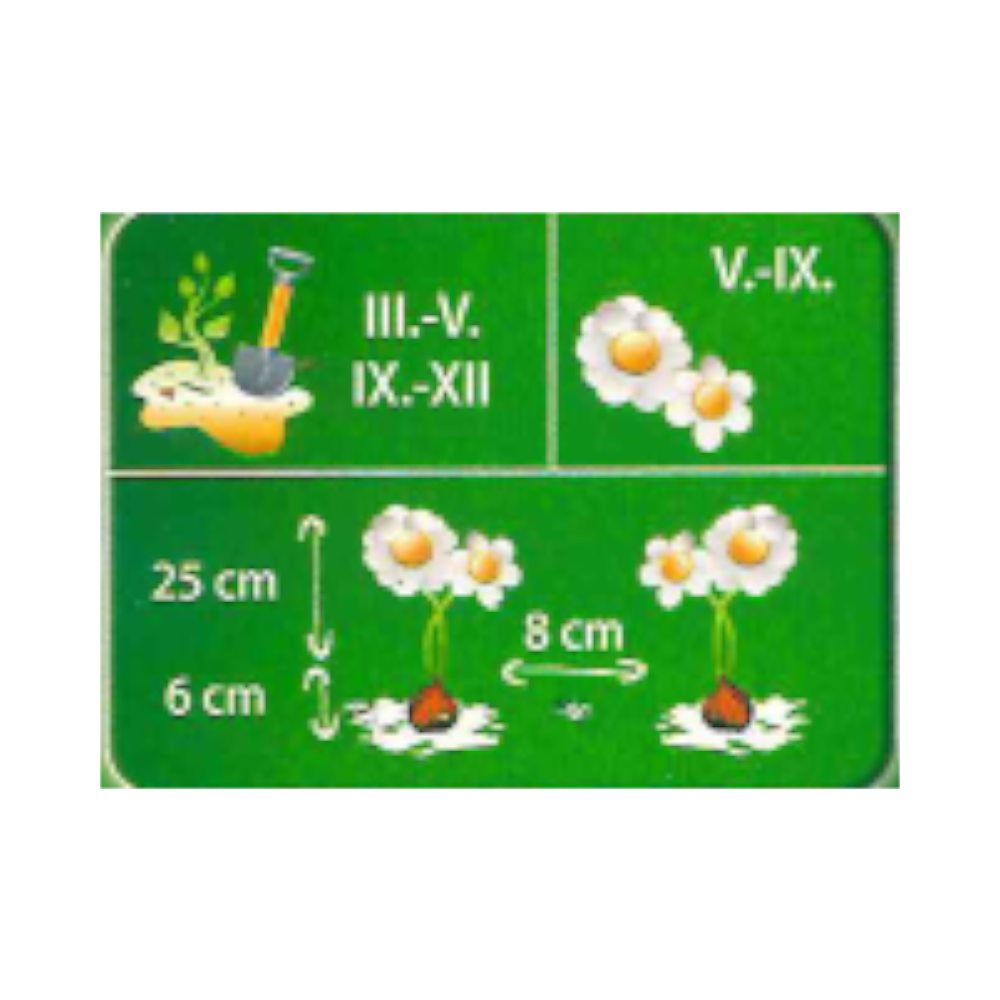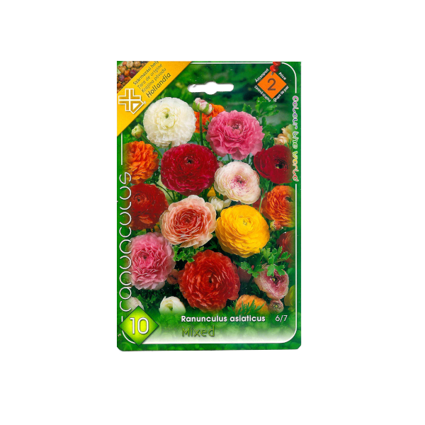 Ranunculus asiaticus. Nyáron virágzó mutatós növény, amely ősszel és tavasszal is ültethető. A lazább, homokos talajt kedveli. Ültetéskor a kis gyökérággal lefelé nézzenek! Őszi ültetés esetén tanácsos lombbal, tőzeggel takarni az első télen. Cserépbe, virágládába is ültethető.