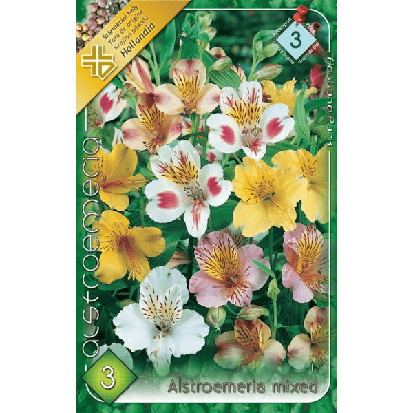 Alstroemeria inkaliliom színkeverék virághagyma. Igazán elegáns és sokoldalú növény. Bármely kert ékessége lehet. Színes és bőséges virágzása végett elég közkedvelt fajta. Garantáltan feldobja a környezetét. Az utolsó fotó tájékoztató jellegű!