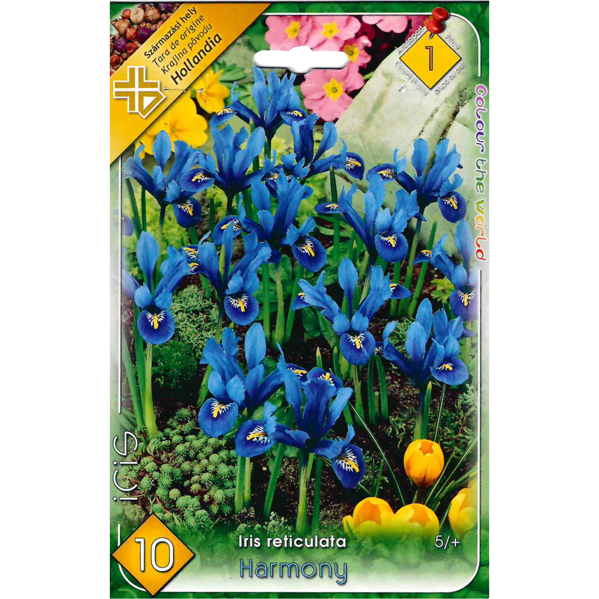 Iris reticulata virághagyma, egy csomag 10 db hagymát tartalmaz. Fénykedvelő növény, de lehetőség szerint inkább napvédett helyen legyen elültetve, mert a közvetlen napfényt nem szereti, télálló.
