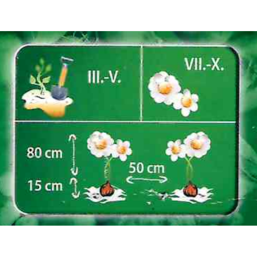 Virághagyma Canna Picasso Kána. Nyár elejétől a fagyokig virágzó igen mutatós, nagyméretű növény. Nem csak virágjával, hanem erős növekedésű, szép szinü lombozatával is díszít. Bőséges vízellátást igényel. Ültetés áprilistól, a kert napos helyére.