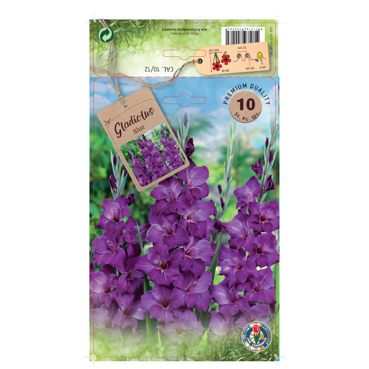 A kardvirág (Gladiolus) ‘Blue’ fajta magas szárán sorakozó, nagyméretű, telt virágai különleges kékes-lilás árnyalatukkal igazi ékkövei a kertnek. Ideális választás virágágyásokba és vágott virágnak is, mivel hosszú ideig díszít a vázában.
