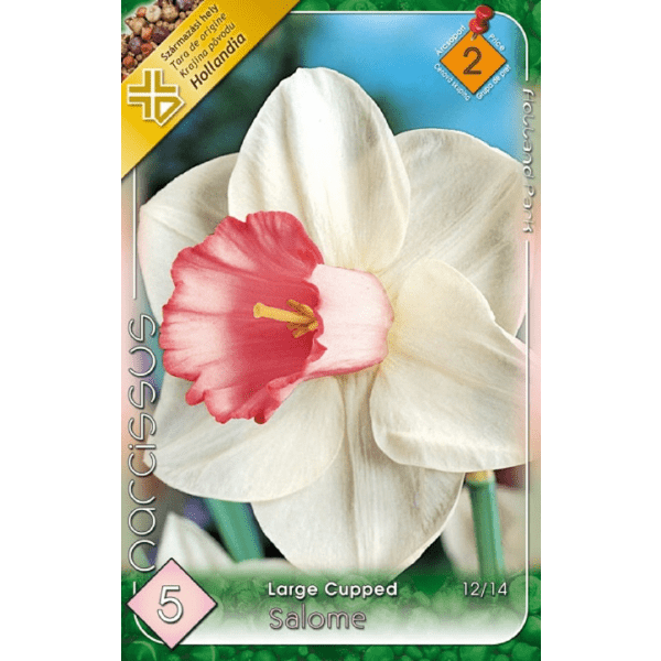 Nárcisz virághagyma (narcissus salome). Szinte minden talajon jól fejlődnek. Szeptembertől decemberig ültethetők. Legszebbek nagyobb önálló csoportokba vagy ágyásba ültetve. Kiválóak vágott virágnak is!