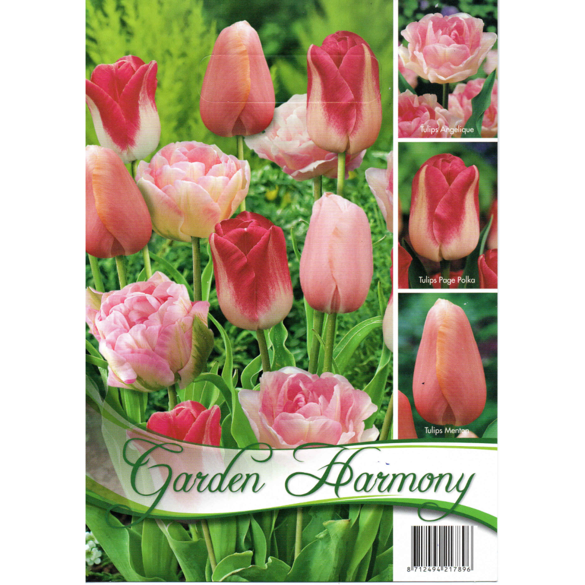 Ez a rózsaszín színkollekció 3 különböző tulipán fajtát (Angelique, Page Polka és Menton) tartalmaz, így változatos megjelenést biztosít a virágágyásokban.