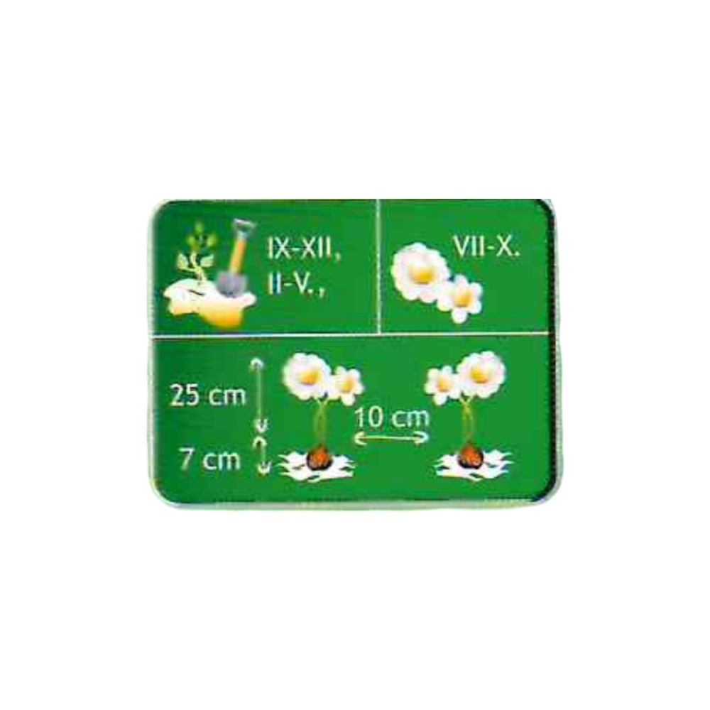 30 db-os vegyes színű frézia virághagyma papírtáskában. Fénykedvelő, de a közvetlen napfényt nem bírja, így ültessük védettebb helyre. Mérsékelt öntözést igényel, ültetni pedig tavasszal és ősszel érdemes.