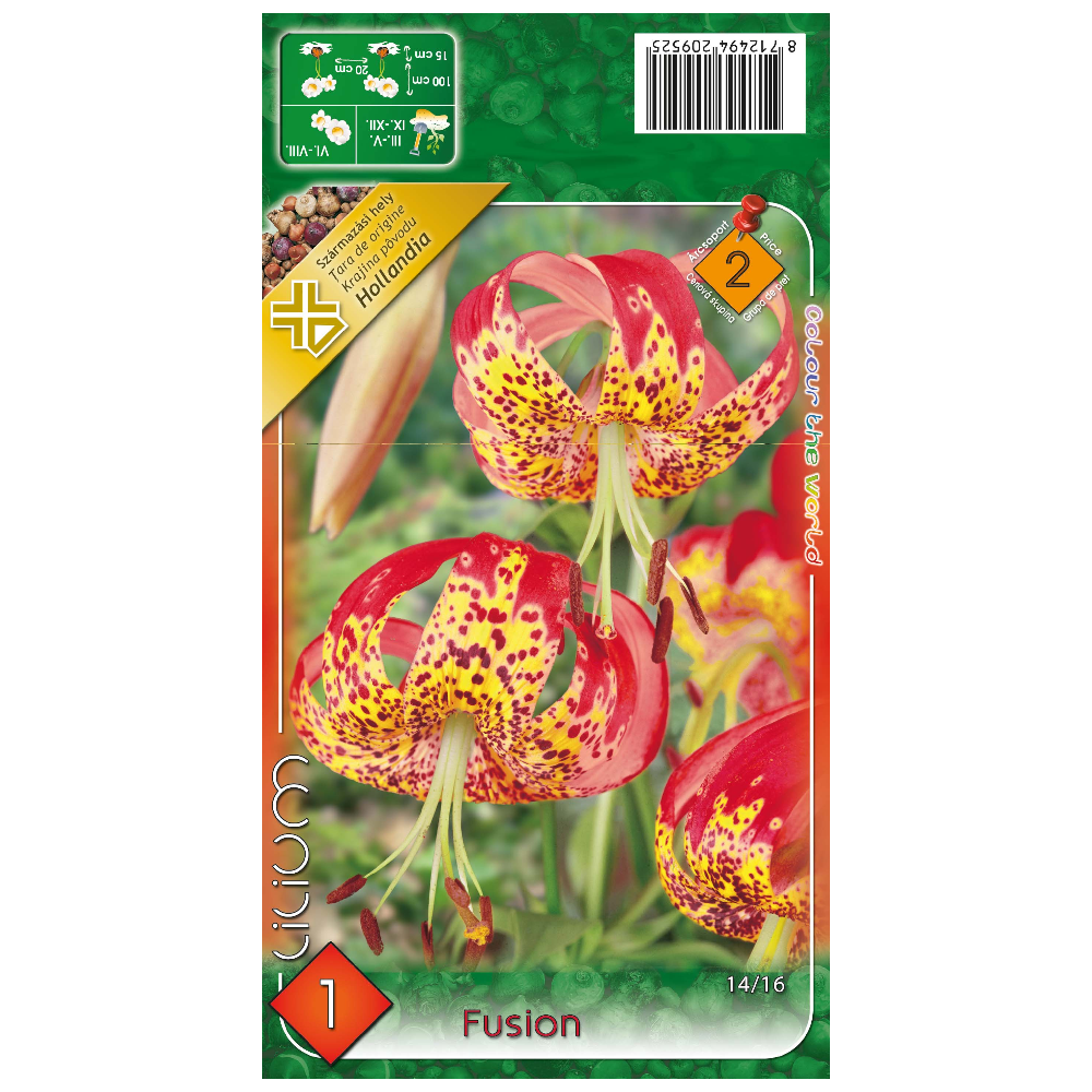 A liliom ‘Fusion’ különleges, egzotikus megjelenésű dísznövény, feltűnő sárga alapon piros pöttyös virágaival. Elegáns formája és élénk színei igazán látványossá teszik a virágágyást, szoliterként és csoportosan ültetve is remekül mutat.