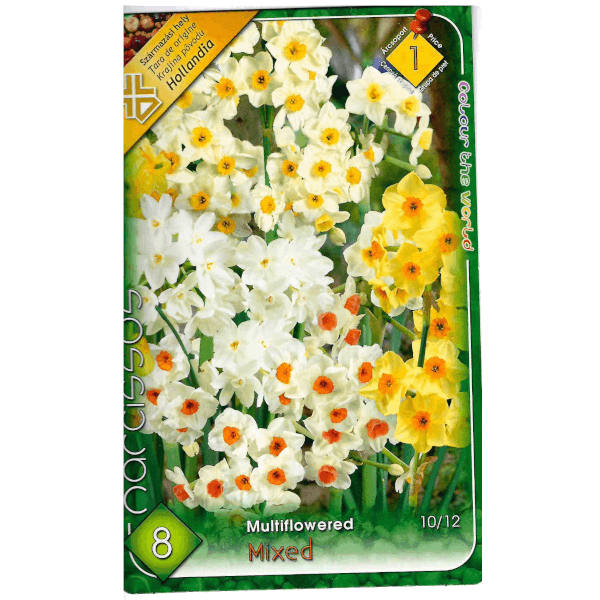 Csokros Nárcisz színkeverék virághagyma, 8 db/csomag kiszerelésben. A nárciszok szinte minden talajon jól fejlődnek. Szeptembertől decemberig ültethetők. Legszebbek nagyobb önálló csoportokba vagy ágyásba ültetve. Kiválóak vágott virágnak is!