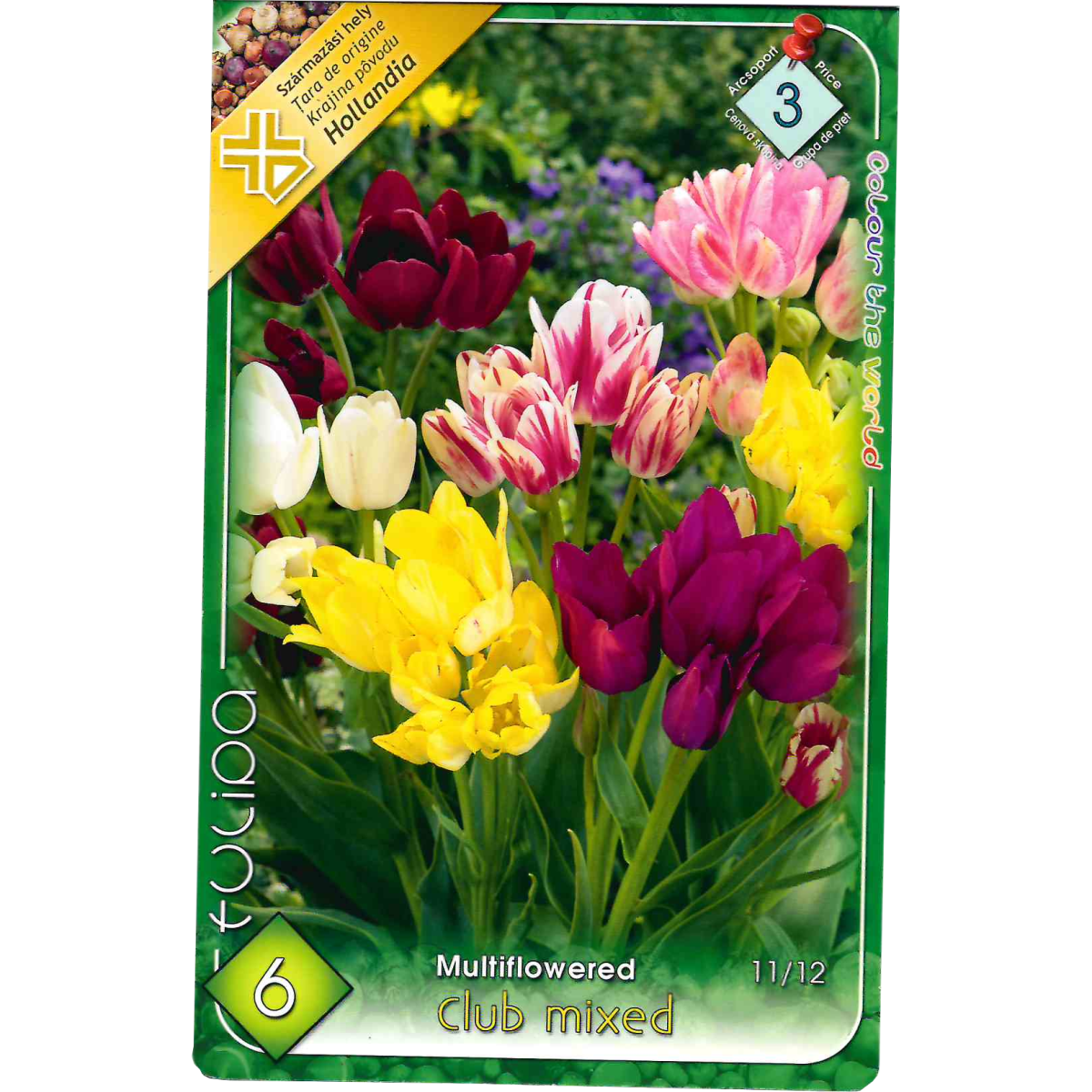 Tulipán Club mixed virághagyma színkeverék, 6 darab/csomag kiszerelésben. 50cm szárhosszúságú, igen hosszan virágzó, különleges tulipánok. A növény áttelelő része télen a szabadban, helyén hagyható, a hagymát, gumót stb. nem szükséges ősszel felszedni. Amennyiben az áttelelt növényállomány túlságosan elsűrűsödött, szétosztásuk, átültetésük a nyári hónapokban végezhető. Ássuk ki a növényeket lombjuk leszáradásakor vagy közvetlenül utána. A szétválasztás, osztályozás után a visszaültetése szánt hagymák, gumók esetleges sebeit hagyjuk szellős, hűvös helyen beszáradni. Ezután, még a nyár végén vagy kora ősszel, ültessük el őket, hogy a telet már a jól begyökeresedve várhassák. A képek tájékoztató jellegűek.