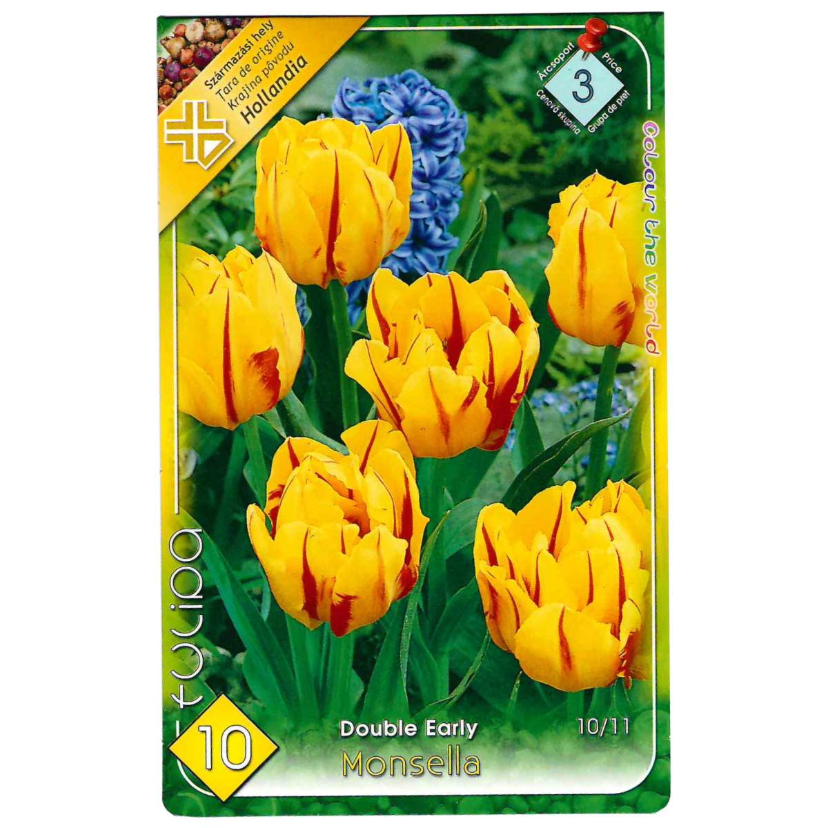 Sárga-piros színű teltvirágú korai virágzású tulipán virághagyma, 10 darab/csomag kiszerelésben. Legjobban napos helyen fejlődnek, jó vízelvezetésű, laza humuszban gazdag talajon. A pangó vizet nem tűrik. Télállóak, így az elültetett hagymák több évig egy helyben hagyhatóak. Az elnyílt virágfejet mindig távolítsuk el, hogy a növény ne érleljen magot. Így a hagyma nagyobbra fejlődik, a következő évi virágzás szebb lesz. A képek tájékoztató jellegűek.