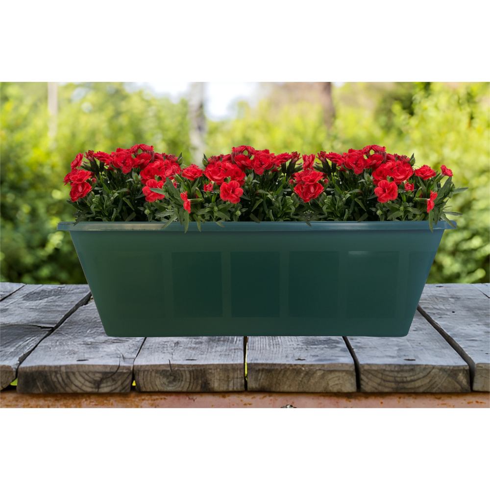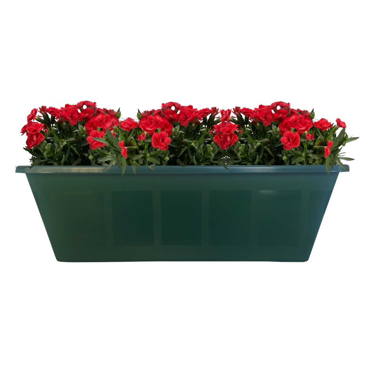 Műanyag, zöld színű balkonláda. Strapabíró, a műanyag alapanyagának köszönhetően könnyen tisztán tartható. Lassan párologtatja a vizet, ezáltal a növény egészséges marad és ritkábban kell locsolni. Mérete: 80 cm x 20 cm x 15 cm. Űrtartalma: 24 liter.