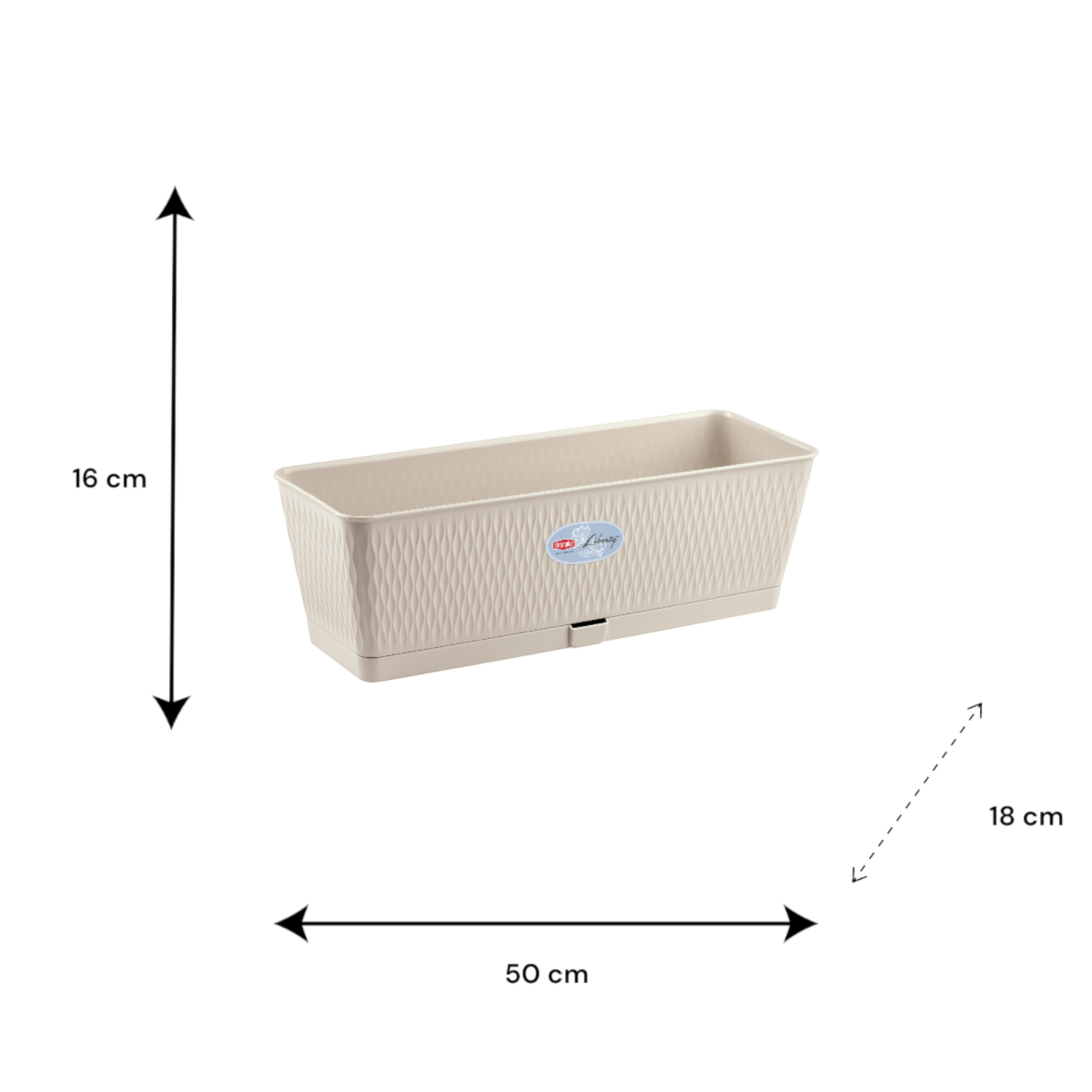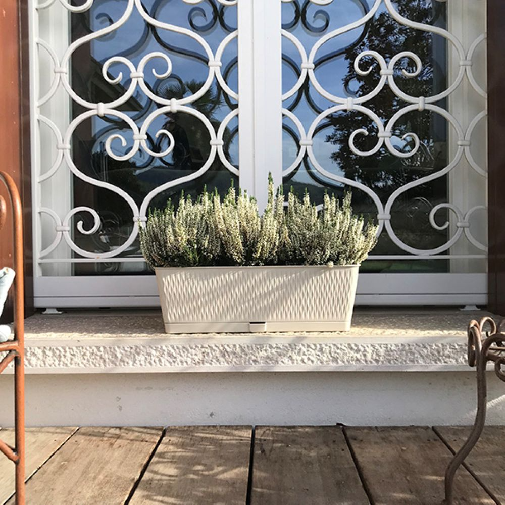 A Liberty 50 cm-es krémszínű balkonláda ideális választás erkélyre, teraszra vagy akár beltérre, ha praktikus és kevés gondozást igénylő növénytartót keresel. A beépített önöntöző rendszer – víztartállyal és vízszintjelzővel – segít, hogy növényeid folyamatosan megfelelő nedvességhez jussanak, akkor is, ha épp kimarad egy-két öntözés. Könnyű műanyagból készült, így hosszabb távon is megbízható megoldást kínál.