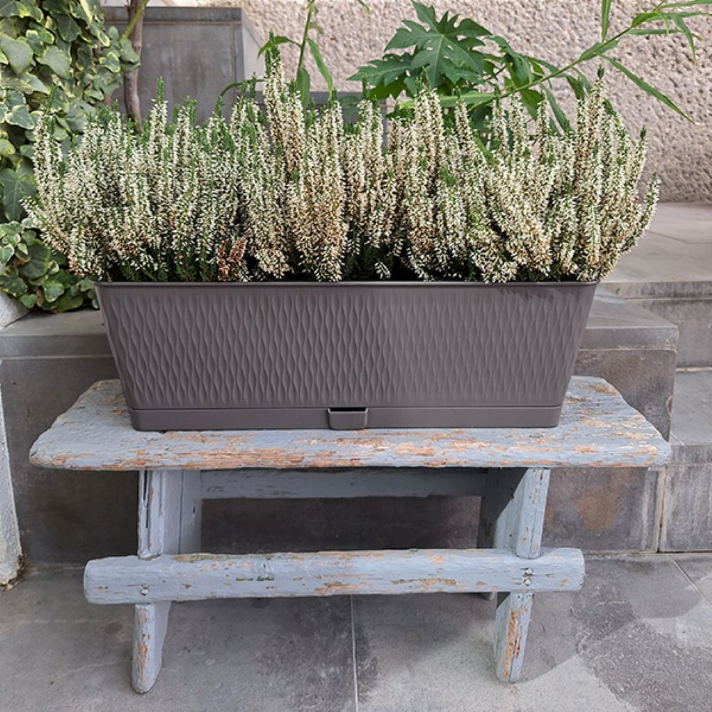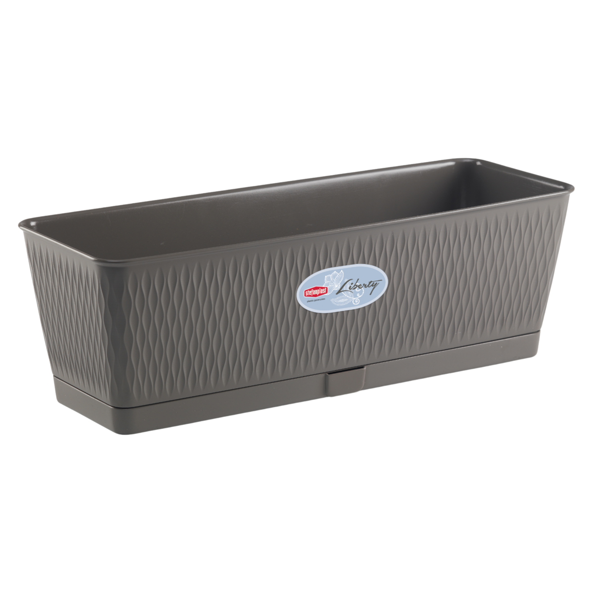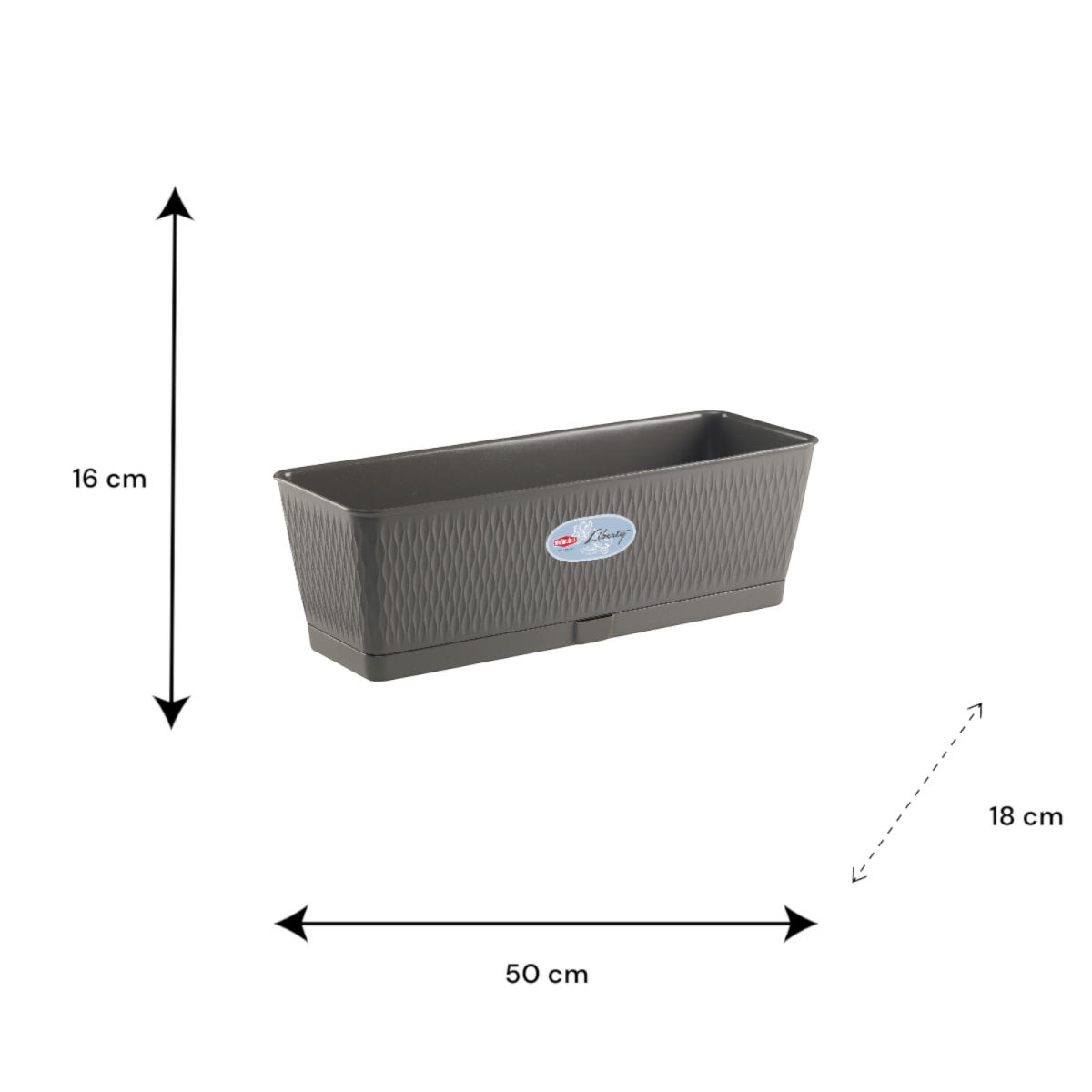 A Liberty 50 cm-es szürke színű balkonláda ideális választás erkélyre, teraszra vagy akár beltérre, ha praktikus és kevés gondozást igénylő növénytartót keresel. A beépített önöntöző rendszer – víztartállyal és vízszintjelzővel – segít, hogy növényeid folyamatosan megfelelő nedvességhez jussanak, akkor is, ha épp kimarad egy-két öntözés. Könnyű műanyagból készült, így hosszabb távon is megbízható megoldást kínál.