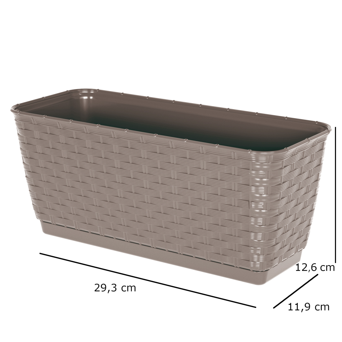 A Ratolla 300P műanyag balkonláda tökéletes választás balkonokra és teraszokra. Tartós műanyagból készült, így ellenáll az időjárás viszontagságainak, és hosszú élettartamot biztosít. Praktikus kialakítása révén könnyen elhelyezhető, és tökéletes a virágok vagy kisebb növények nevelésére.