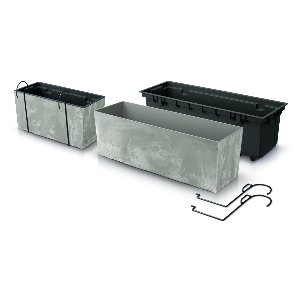 Az Urbi Case 600 balkonláda műanyagból készült, beton hatású megjelenéssel rendelkezik. Modern, elegáns designja ideálissá teszi balkonokra, teraszokra vagy ablakpárkányokra. Tartós és könnyen kezelhető, így tökéletes választás virágok, fűszernövények vagy egyéb növények nevelésére kültéren.