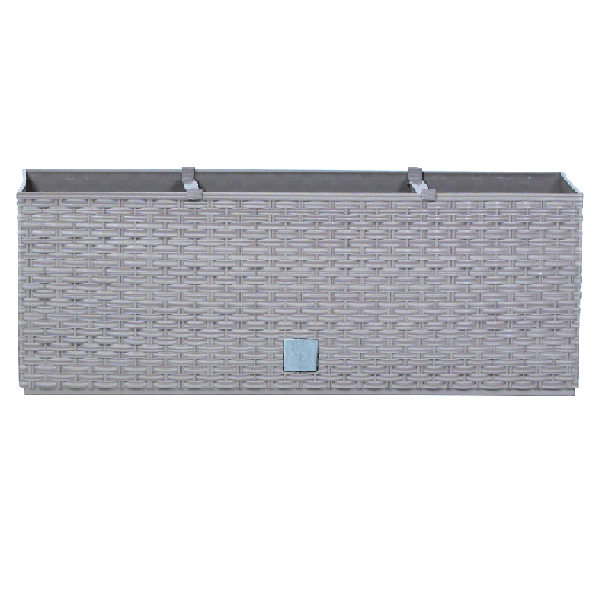 Rato önöntözős, rattan felületű teraszláda barna színben.