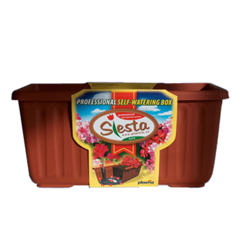 Siesta műanyag balkonláda, 40 cm, terra színű. Virágok és egyéb zöld növények ültetésére, kül- és beltéri használatra egyaránt alkalmas. A benne lévő víztároló lehetővé teszi, a heti egyszeri öntözést. A növény a cserép aljában levő tárolóból szívja egyenletesen a vizet.