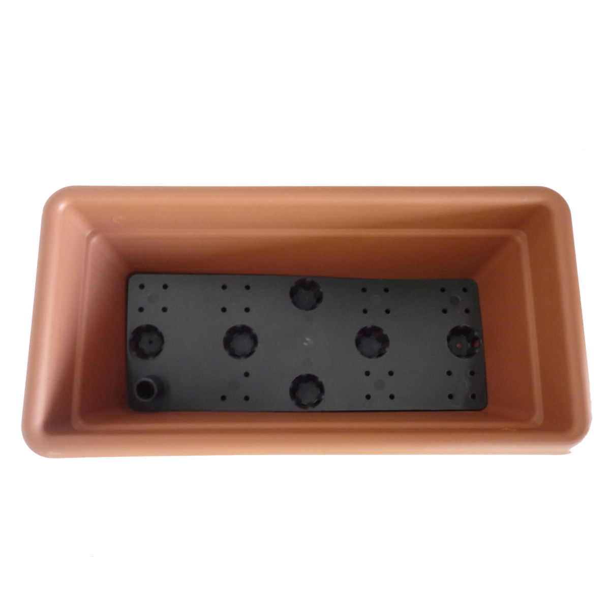 Kültéri műanyag Miami balkonláda önöntözős rendszerrel, terracotta színben. A termék nem tartalmaz indikátort. Használatbavétel előtt a termék csomagjában található fekete színű önöntöző betétet a balkonláda aljába szükséges elhelyezni úgy, hogy előtte az önöntöző betét sarkában kialakított függőlegesen kiálló csőtartóba beillesztjük a mellékelt csövet. Ezt követően a balkonládát földdel kell feltölteni az előzőleg függőlegesen behelyezett cső tetejéig, de azt nem befedve. A későbbiek folyamán a csövön keresztül is szükséges vízzel feltölteni a balkonládát.