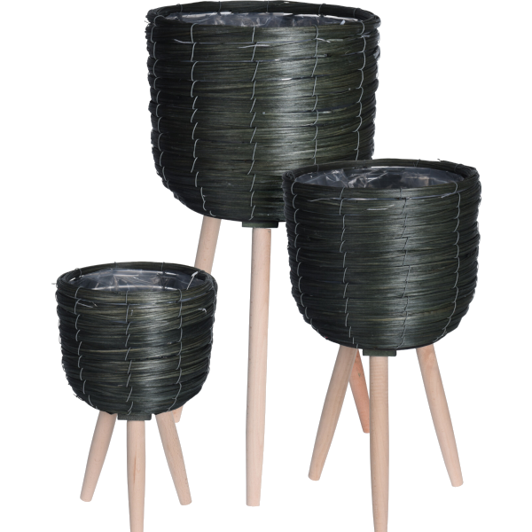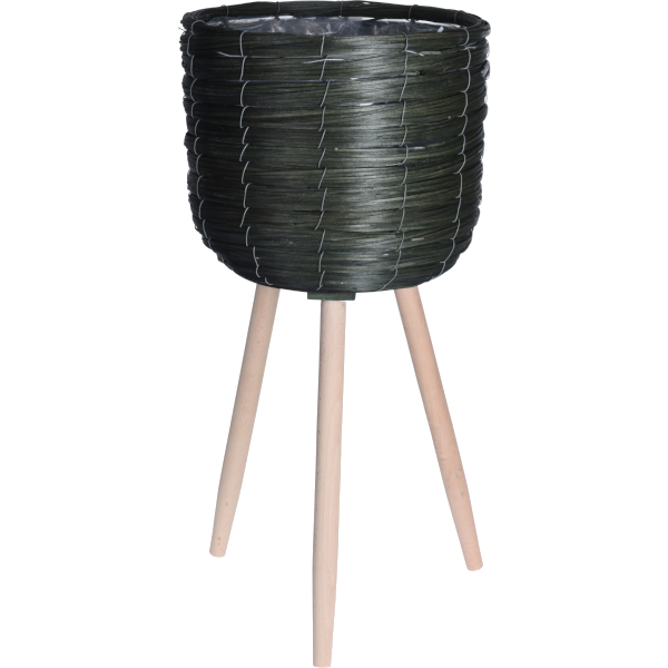 Zöld kaspó fa lábakkal, 60 cm magas. Anyaga: fa/belseje nejlon.