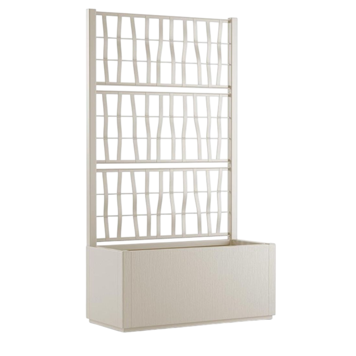 Az Ethica 80 cm-es lugas egy praktikus, moduláris megoldás, amely egyesíti az ültetőláda és a növénytámasz előnyeit. A nagy méretű ráccsal ellátott láda ideális futónövények, dísznövények vagy kisebb zöldfal kialakításához erkélyen, teraszon vagy kerti környezetben. A vízelvezető alj hozzájárul a megfelelő vízháztartáshoz.