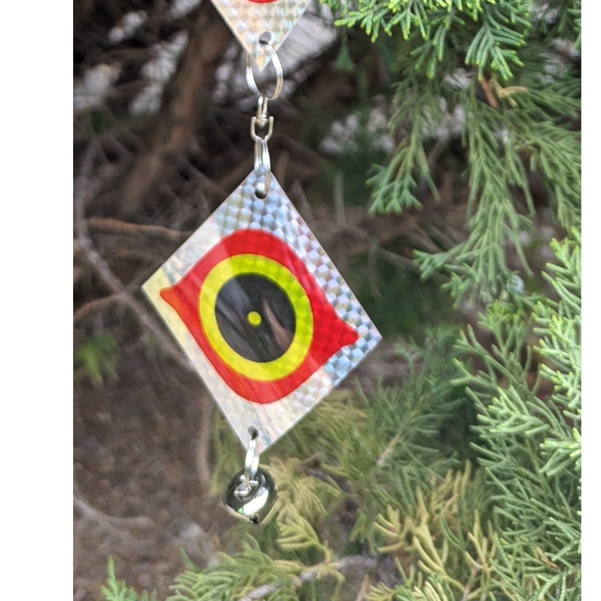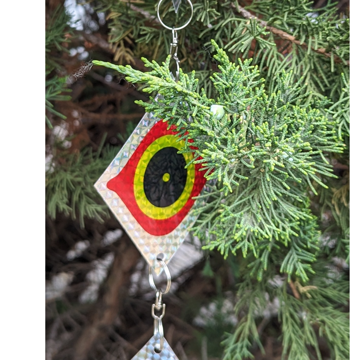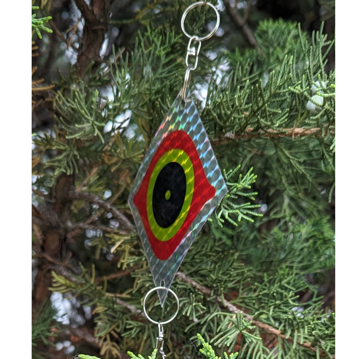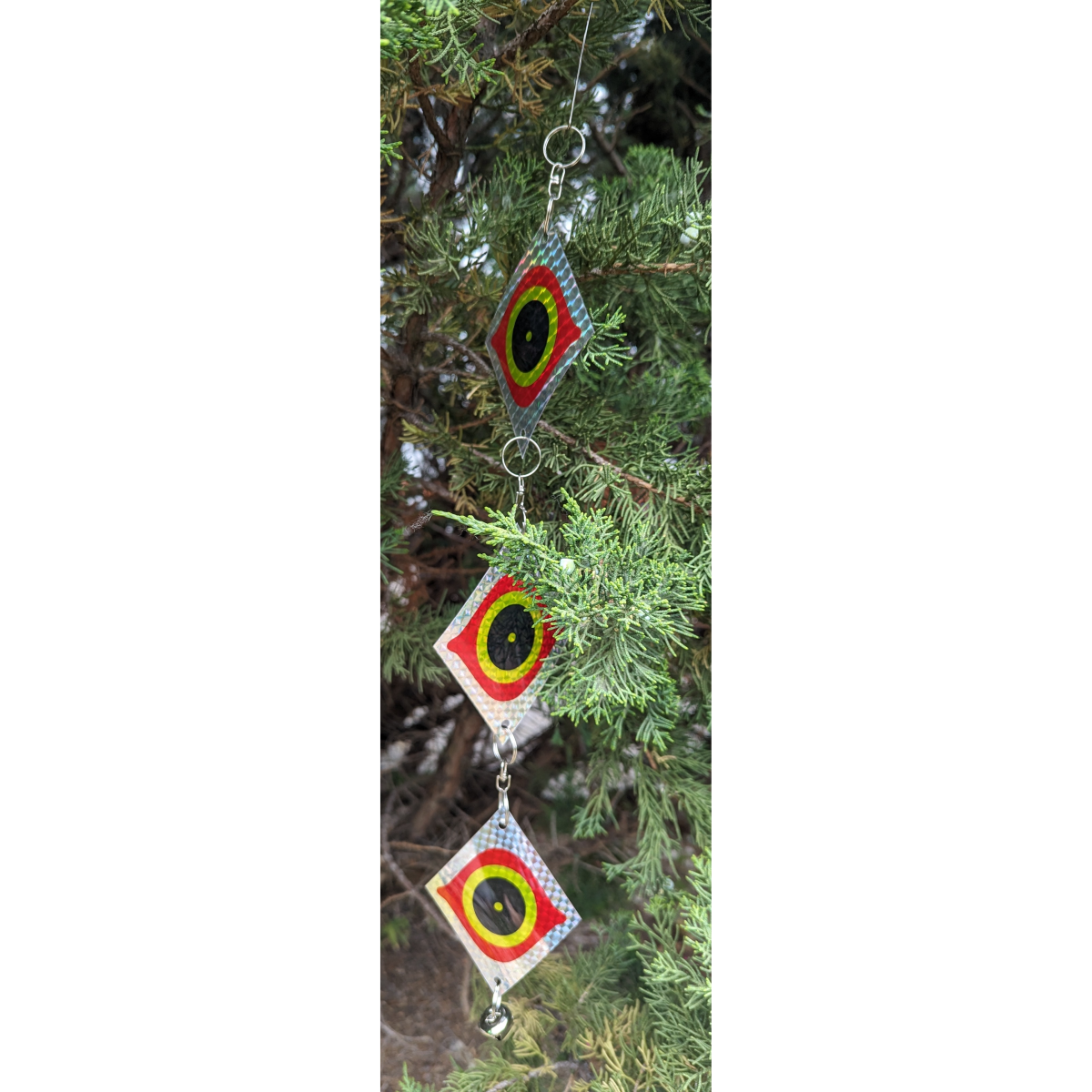 A madárriasztó korongok és spirálok, gyémánt lapok szintén felfüggesztve, szélben mozogva érhetnek el hatékony riasztó hatást. Műanyag felület, így esőnek is  ellenáll.