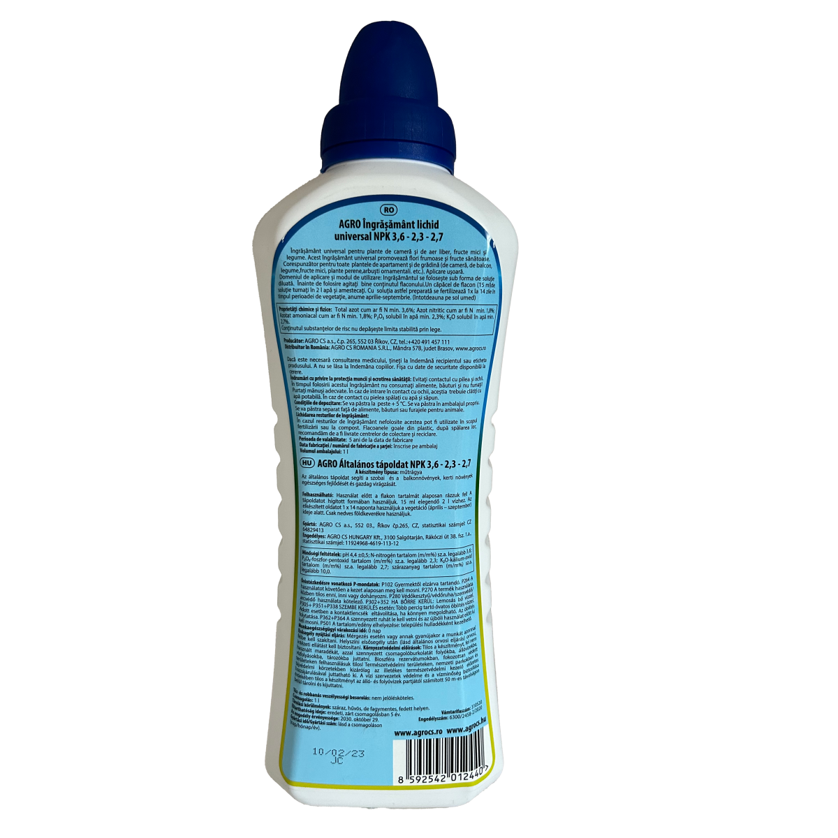 Tápoldat minden szobai, balkon- és terasznövényre és egyéb kerti növényekre. Elősegíti a növények egészséges növekedését és gazdag virágzását. Használjuk a tápoldatot 1x kéthetente az egész vegetációs idő alatt, 1x havonta a vegetációs időn kívül. Adagolás: 15 ml (egy zárókupak) 2 liter vízhez, alaposan elkeverve. Összetétel: nitrogén foszfor kálium (4-2-3).