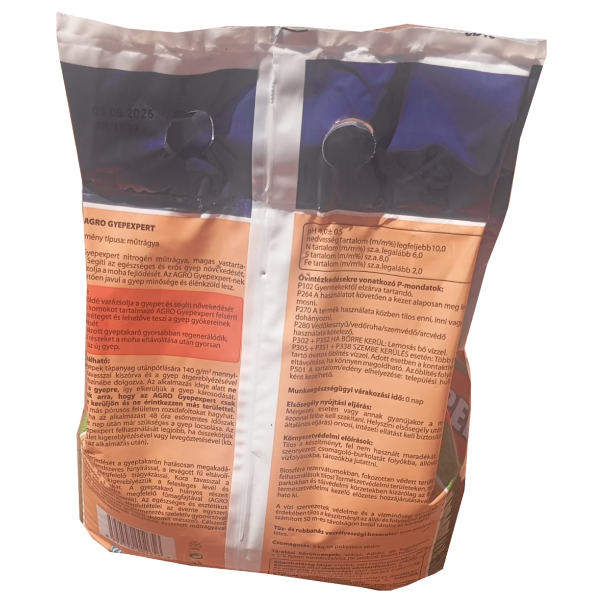 Gyepkészítmény műtrágya tartalommal, nitrogén- és vastartalommal a gyep élénkzöld színéért. Hatására a moha kiszárad, így könnyen eltávolítható a gyepes területről. A trágyázott gyep gyorsan regenerálódik és a mohától károsodott helyek gyorsabban belekötődnek az alapnövényzetbe. Alkalmazása elsősorban tavasszal ajánlott. Adagolás: 3 kg készítmény 20-30 m2 területre elegendő. Összetétel: nitrogén 6% + vas 2%. Az életképek tájékoztató jellegűek!