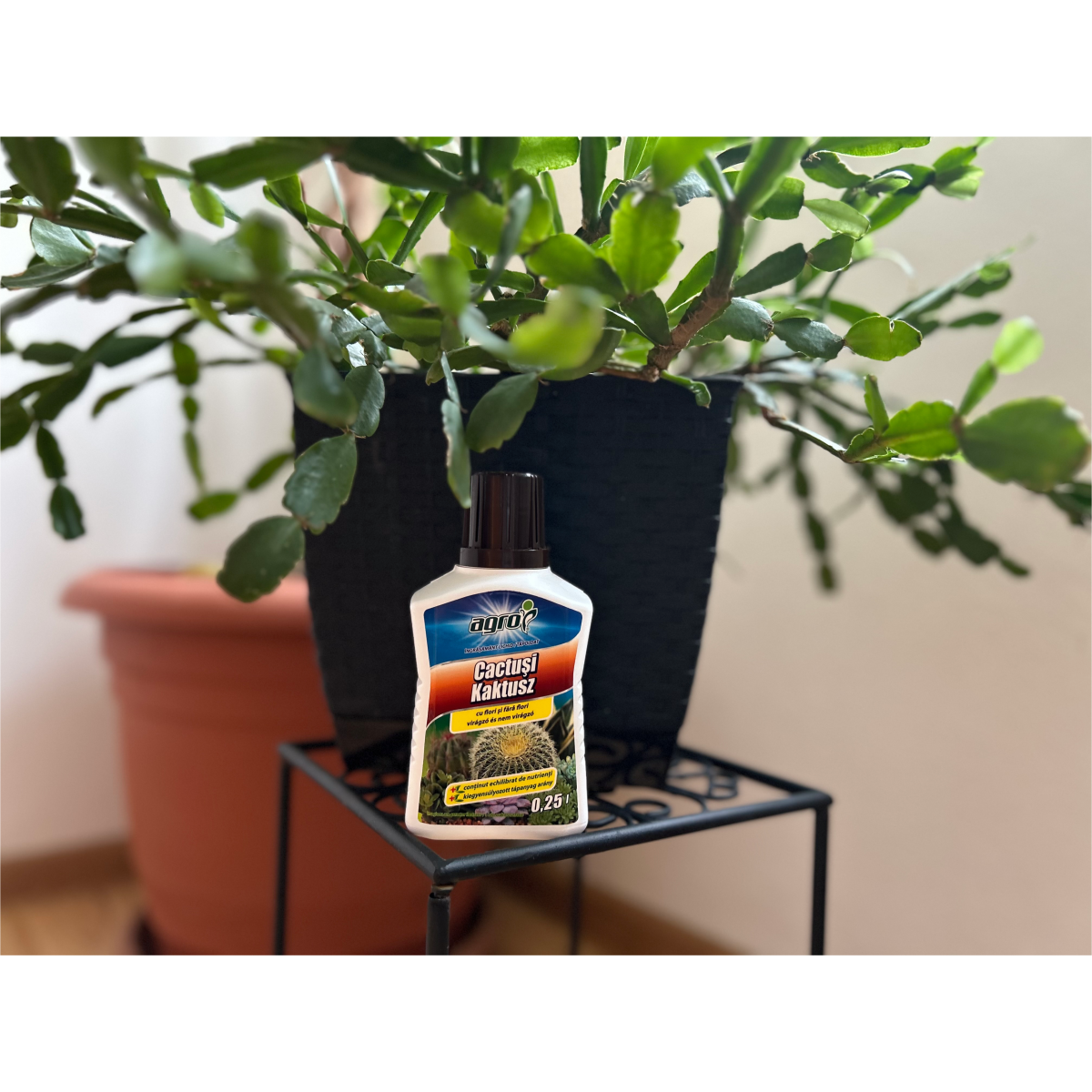 Magasabb foszfortartalom a gazdag virágzásért és alacsonyabb nitrogéntartalom a növekedés mérséklésére. Kaktuszok és egyéb szárazságot kedvelő virágok tápoldatozására (kaktusz, aloe vera, fügekaktusz, töviskorona, stb.). Használjuk a tápoldatot 1x kéthetente az egész vegetációs idő alatt. Adagolás: 15 ml (egy zárókupak) 2 liter vízhez, alaposan keverjük el. Összetétel: nitrogén foszfor, kálium (4-7-6).