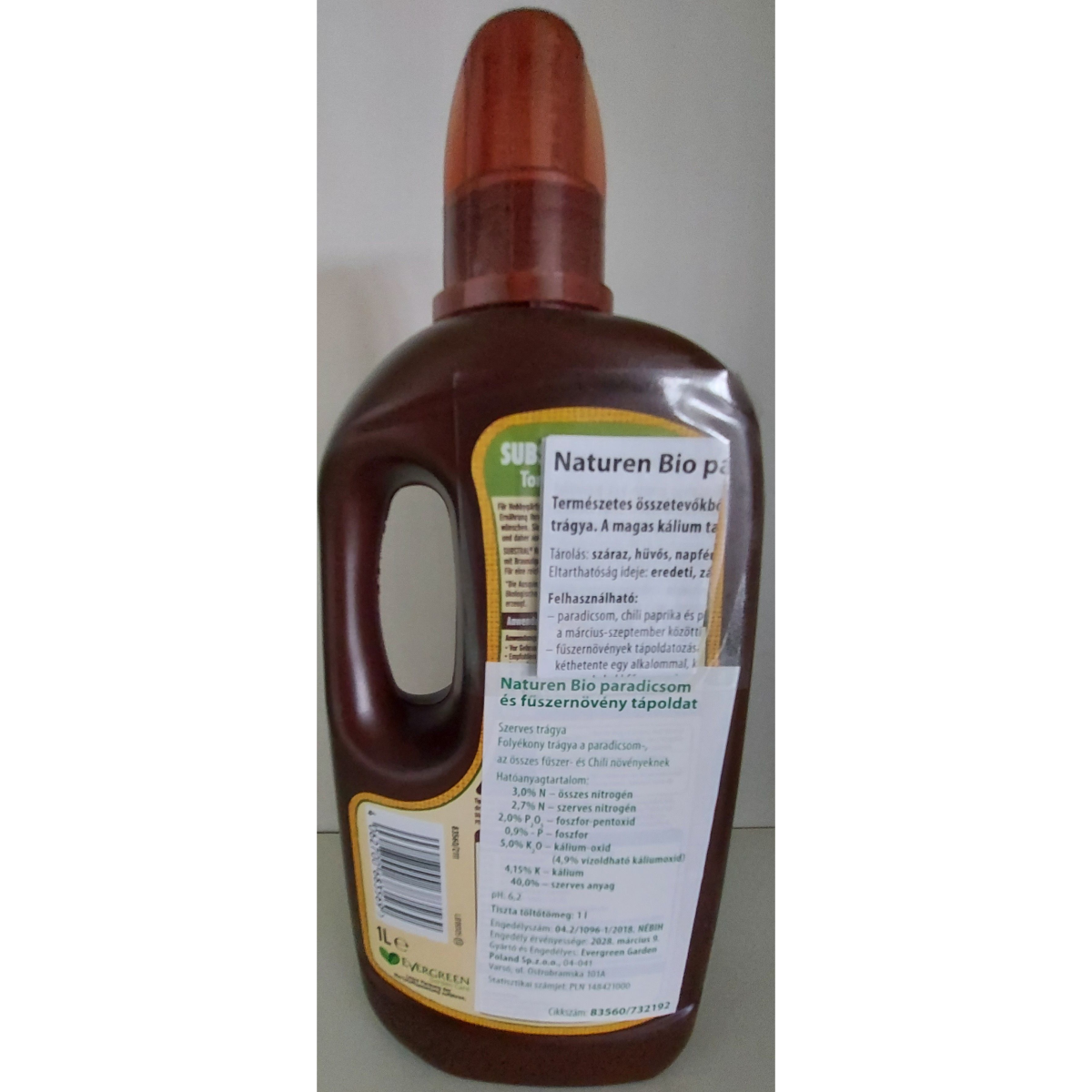 Szerves ásványi tápoldat valamennyi paradicsom-, fűszer- és chili-növény számára. Természetes nyersanyagokból és nyomelemekkel. Alapanyagok: élelmiszer feldolgozásból származó növényi anyagok, természetes ásványi anyagok. Magas kálium tartalom a zamatos paradicsomokért. Ökológiai gazdálkodásokban is használható. Növénykultúrától függően 7-14 ml tápoldat 1 liter öntözővízhez. Alkalmazható márciustól szeptemberig.