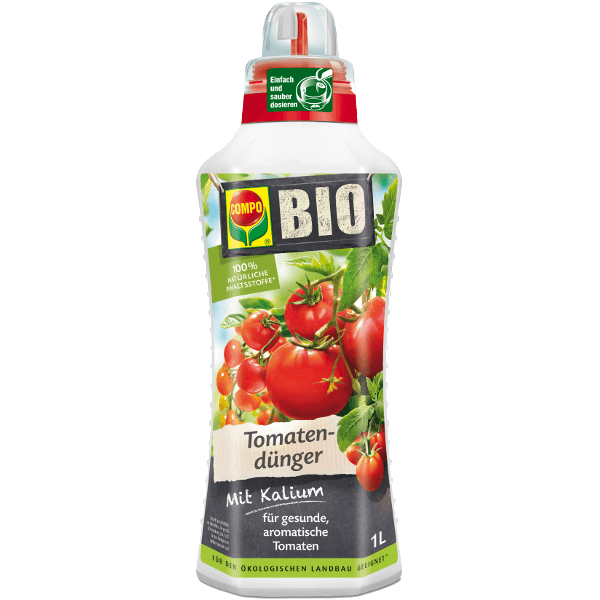 Compo BIO Paradicsom tápoldat az egészséges és ízletes paradicsomokhoz. A kiegyensúlyozott tápanyag-összetétel egészséges növekedést biztosít. 100%-ban természetes összetevőknek köszönhetően biogazdálkodásra is alkalmas.