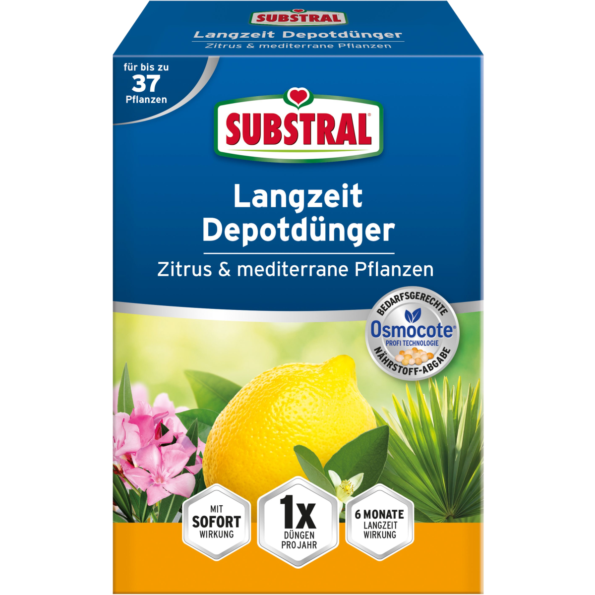 Professzionális technológia, eredeti Osmocote, lassú felszívódású műtrágyával, extra magnéziummal és vassal. Kettős hatása van: azonnali és 6 hónapos hosszú távú hatás, A tápanyagok a hőmérséklettől és vízellátástól függően szabadulnak fel, Évente csak egyszer kell műtrágyázni, alkalmazható márciustól júliusig. A virág fajtája és a virágföld mennyiségének függvényében kell a virágföldhöz keverni, Fenntartható csomagolás:100 %-ban újrahasznosított papírból készült doboz.