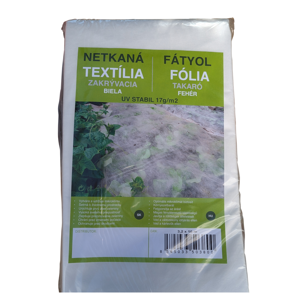A 3,20×10 méteres, 17 g/m² sűrűségű fehér fátyolfólia UV-stabil kialakítása révén megbízható védelmet nyújt a zöldségnövények és palánták számára az időjárási hatások és kártevők ellen. Kiválóan alkalmas mind tavaszi takaráshoz, mind téli fagyvédelemhez, miközben biztosítja a szellőzést, a víz és a fény áteresztését is.