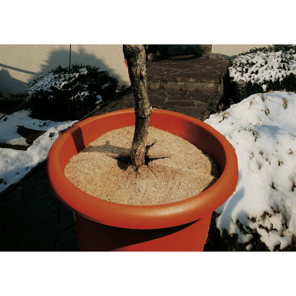 100 % kókuszrost, egyik oldala természetes latexel préselve, és így nagyon rugalmas, többször használható, környezetbarát, valamint téli védelemmet biztosít növényeink számára, barna színben.